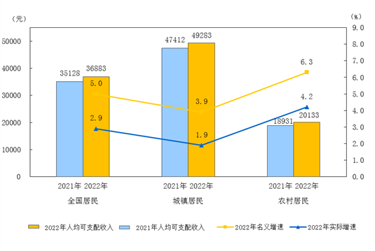 ( 2022年全国及分城乡居民人均可支配收入与增速,数据来源 www.gov.cn)